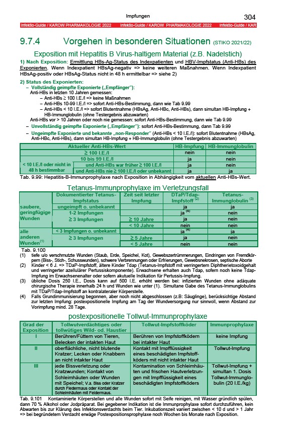 Anti-HBc, Anti-HBs), dann simultan HB-Impfung + HB-Immunglobulin (ohne Testergebnis abzuwarten)